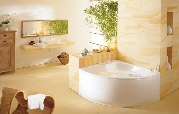 设计技巧:智能浴缸的最大便利之处不必专门花时间等待备水,可通过智能遥控器、互联网或智能手机远距离操控,设置期望的水位与水温,并让智能浴缸提前启动舒适的冲浪按摩以及带有水下LED灯光效果的轻松场景设置。其特有的语音系统,会自动提示浴缸模式状态,加热功能可记录和保持水温,使用完毕后启动清洁系统,可以用循环水和洗涤剂自动清洗浴缸。